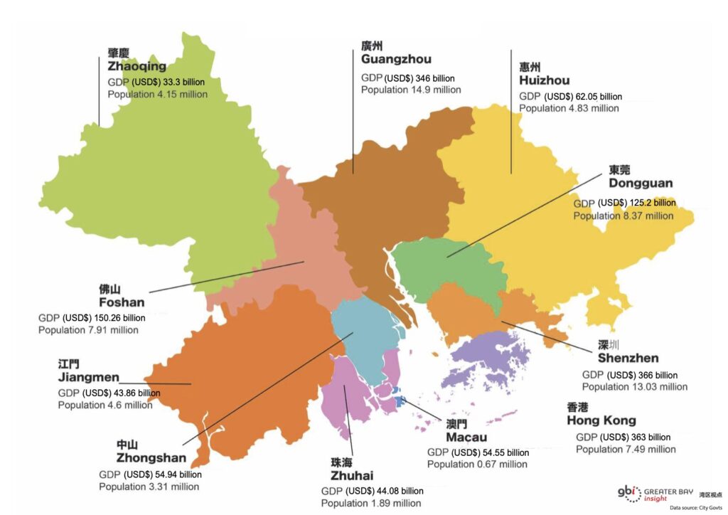 The major cities of the Greater Bay Area