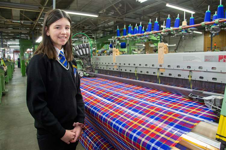Scottish S1 Pupil Emma McCain had the chance to see the tartan she designed coming off the looms at the Johnstons of Elgin mill last February.
