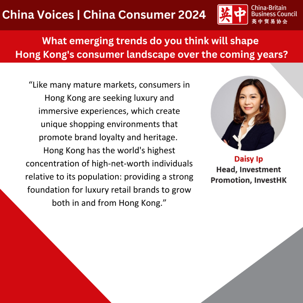 In this article, Lee Fisher, Head of International, Hayman Distillers; Daisy Ip, Head of Investment Promotion, InvestHK; and Celine Tang, Retail & E-commerce Sector Lead, China-Britain Business Council share their insights on the latest trends that are shaping China’s consumer market.