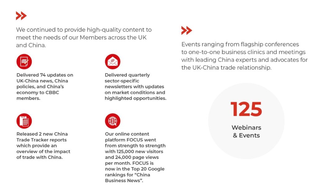 Looking ahead, I am confident that we are in a strong position to support our Members and their customers through 2024 and beyond. I am proud to say that the China-Britain Business Council continues to work hard on its mission of helping its Members develop their business in the exciting but complex China market.