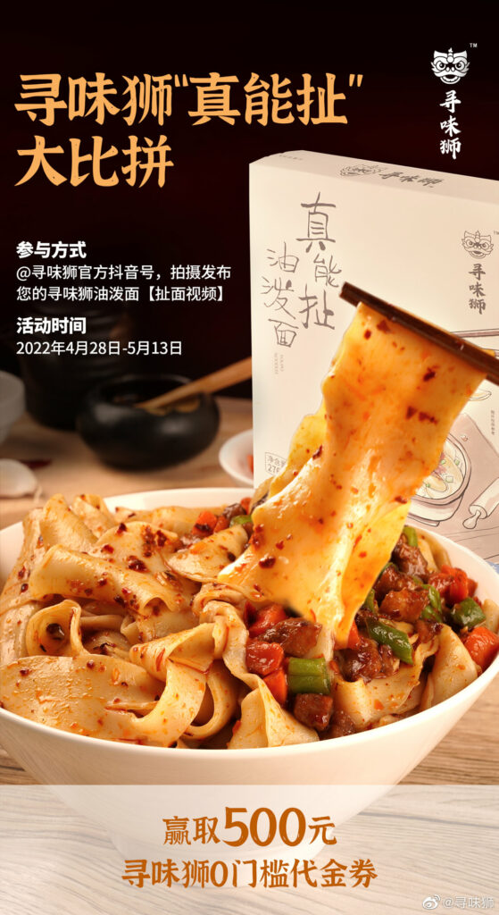 Further catering to the palates of young people, the brand also introduced internet-famous dishes such as “snail noodles” (luosifen, a traditional Guangxi dish) and biang biang noodles – all designed for single diners. To enrich the dining experience, the brand also includes a small amount of semi-finished dough in their packages so that consumers can have fun hand-pulling the noodles before they tuck in.
