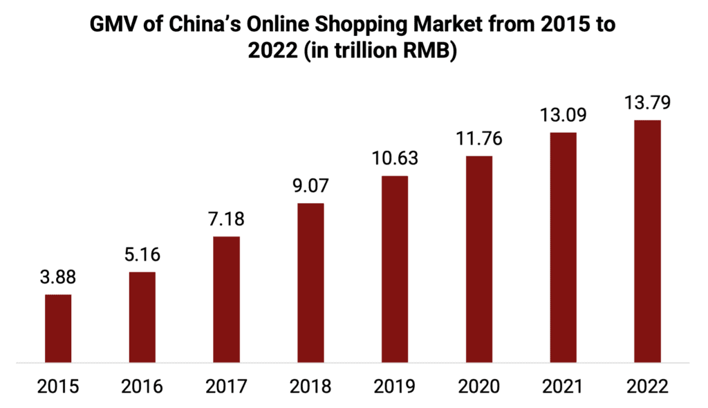 As the world’s largest e-commerce market, China had over 1 billion consumers shop through e-commerce channels in 2022, making up 45.3% of all online retail sales worldwide. Within China, online sales channels accounted for 51% of all sales in the country.